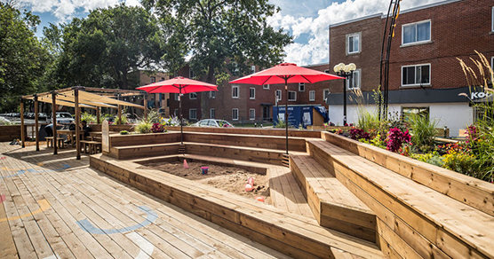 Les nouveaux espaces publics sont conçus pour évoluer tout au long de la saison. Vous êtes donc invités à déposer vos suggestions d’aménagement et d’animation au “Bureau des petits projets”. Situé sur la rue Masson, entre la 5 e et 6 e Avenue, il occupe une position centrale et se veut un lieu de rencontre rassembleur et inspirant.