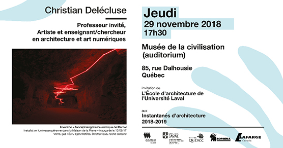 Une présentation de l’École d’architecture de l’Université Laval, en collaboration avec les Musées de la civilisation, LAFARGE Canada, Soprema et la Ville de Québec. »