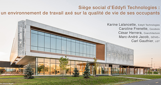 Les conférenciers invités expliqueront comment le bâtiment, entre autres avec l’utilisation du bois en premier plan, permet d’offrir des environnements de travail à valeur ajoutée en termes de santé et de bien-être pour les occupants. Venez en apprendre davantage en compagnie des professionnels ayant participé à la conception de l’édifice.