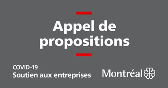 « Montréal, le 9 avril 2020 – La Ville de Montréal annonce le lancement d’un appel de propositions totalisant 1 M$ visant à financer des projets portés par des organismes à but non lucratif (OBNL) qui souhaitent mettre sur pied un soutien technique aux petites entreprises montréalaises éprouvées par la pandémie de la COVID-19.