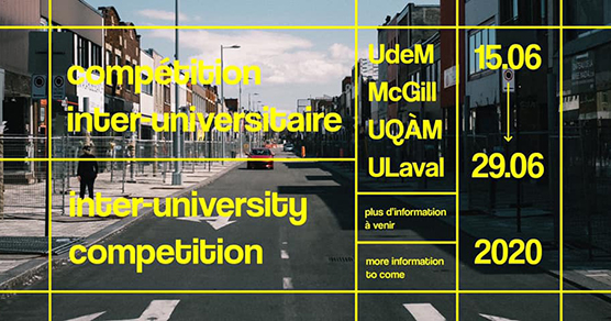 Les étudiants des quatre universités participantes (Université de Montréal, Université McGill, Université Laval et Université du Québec à Montréal) sont invités à participer à une charrette organisée par des étudiants pour les étudiants. L’objectif de ce concours est d’examiner et de reconsidérer l’aspect visuel, spatial et fonctionnel de nos rues principales.