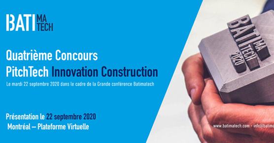 « L’équipe Batimatech a l’honneur d’annoncer l’ouverture des inscriptions du quatrième concours PitchTech Innovation Construction 2020, dont le but est de promouvoir l’innovation dans le secteur du bâtiment par la création ou l’amélioration notable d’un produit ou d’un service.