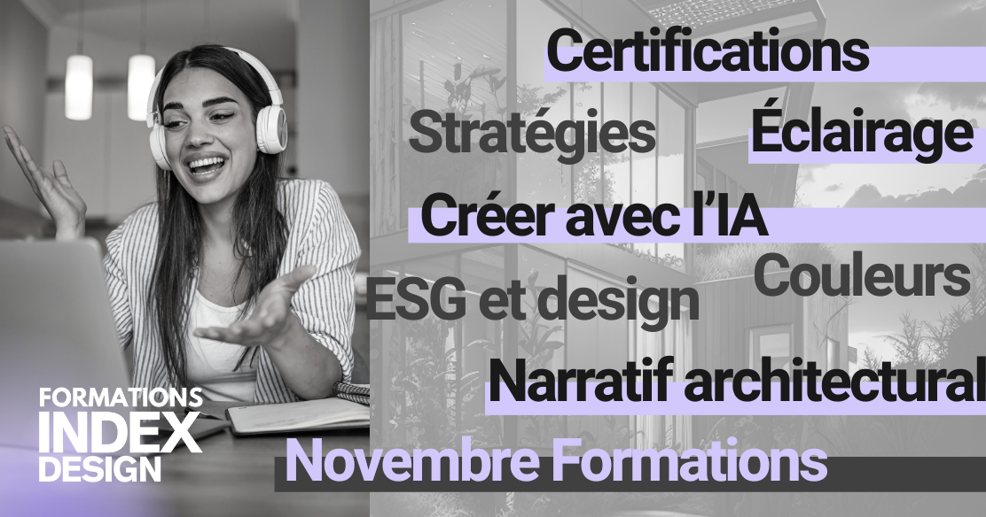 « INDEX-DESIGN PROPOSE 7 FORMATIONS PRATIQUES EN NOVEMBRE, À L’UNITÉ OU EN PASS-FORMATIONS, AVEC DES EXPERTS RECONNUS ET DES THÈMES UTILES