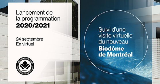 Le Conseil du bâtiment durable du Canada – Québec a le plaisir de vous inviter au lancement de sa programmation annuelle 2020-2021 qui se déroulera en visioconférence le 24 septembre 2020 à partir de 17 h à 19 h.