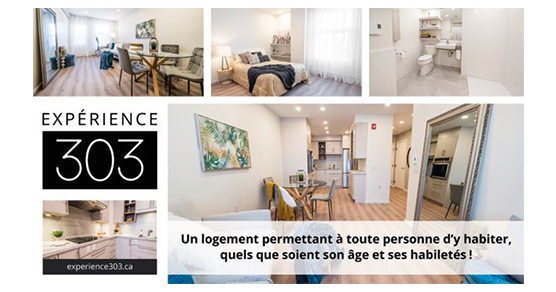 Nous vous invitons GRATUITEMENT à notre visite virtuelle du projet EXPÉRIENCE 303, un logement permettant à toute personne d’y habiter, quel que soit son âge et ses habiletés !