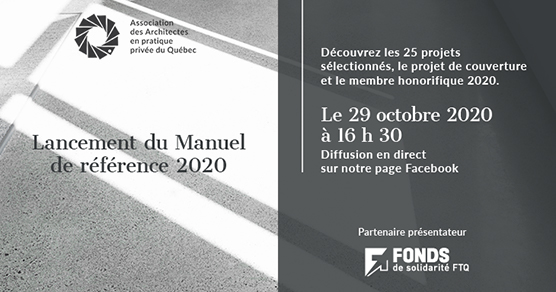 « L’AAPPQ vous invite au lancement virtuel du Manuel de référence 2020, qui sera diffusé en direct de notre page Facebook le 29 octobre prochain de 16h30 à 17h15. Pour y assister, vous n’avez qu’à vous rendre sur la page Facebook de notre évènement et vous inscrire à titre de participant.