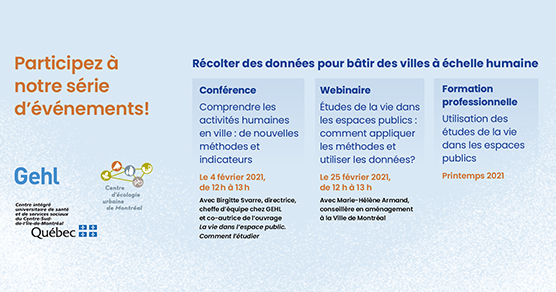 Le CEUM lancera la première revue et mode d’emploi approfondis des ÉVEP au Canada lors de la conférence Comprendre les activités humaines en ville : de nouvelles méthodes et indicateurs. Notre invitée Birgitte Svarre, directrice et cheffe d’équipe chez Gehl, exposera comment certaines villes réussissent à adapter leurs espaces publics pour faire face aux grands défis du 21e siècle, tels que les changements climatiques et la densification des centre-villes, et ce particulièrement dans le contexte sanitaire actuel où l’importance d’espaces publics de qualité est encore plus cruciale.