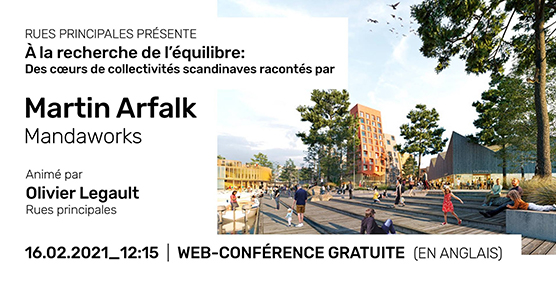 « Mardi le 16 février prochain sur l’heure du midi, Rues principales et Mandaworks vous invitent à venir vous inspirer des cas de trois communautés scandinaves porteuses de projets exemplaires d’aménagement de leurs cœurs de collectivités.