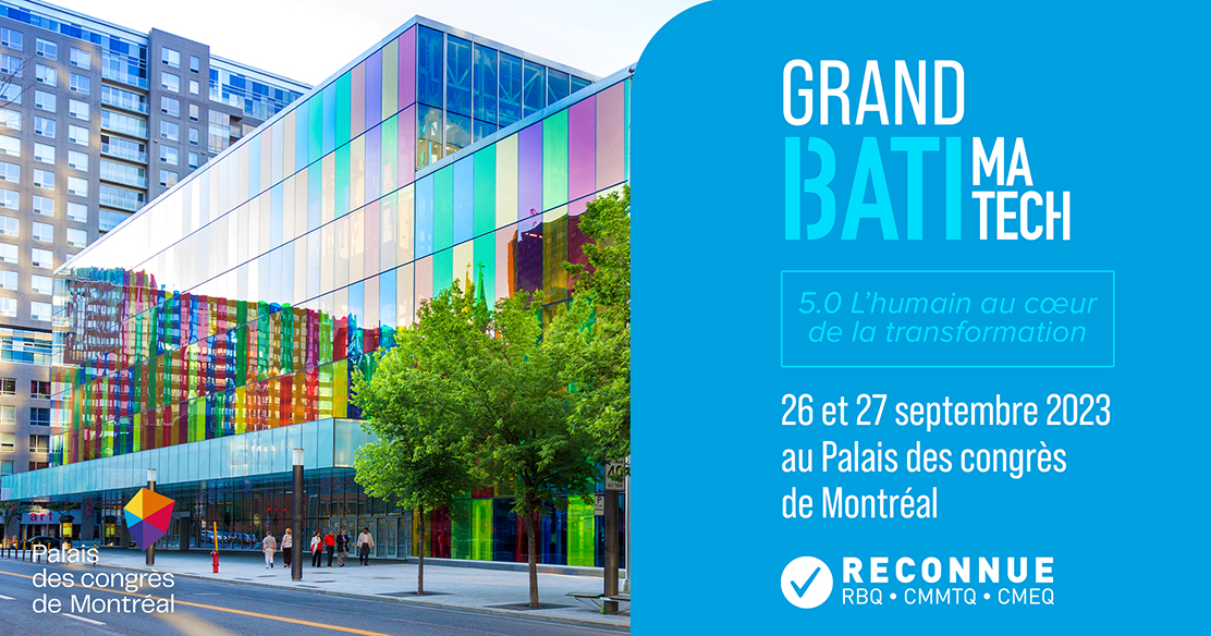 Nous sommes ravis de vous annoncer la 8ème édition du Grand Batimatech 2023, l’unique événement canadien dédié exclusivement à la construction et aux technologies, qui se tiendra au Palais des Congrès de Montréal les 26 et 27 septembre 2023!