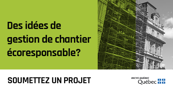 « RECYC-QUÉBEC est à la recherche de projets visant à réduire à la source les quantités de matériaux de construction.