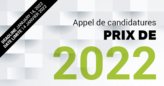 La date limite de soumission des candidatures pour les prix de 2022 est fixée au 14 janvier 2022 à 23 h 59 HNE. Les candidats peuvent soumettre les projets qui accompagnent leur candidature par le biais de la plateforme des Prix de l’IRAC.