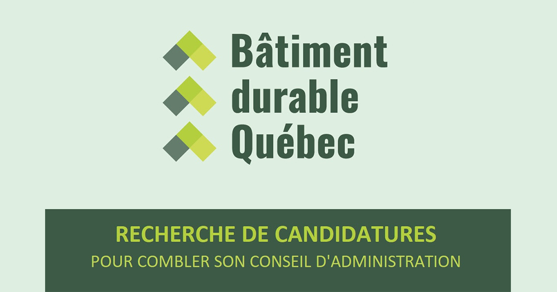 « Bâtiment Durable Québec est à la recherche de candidatures pour combler le conseil d’administration.