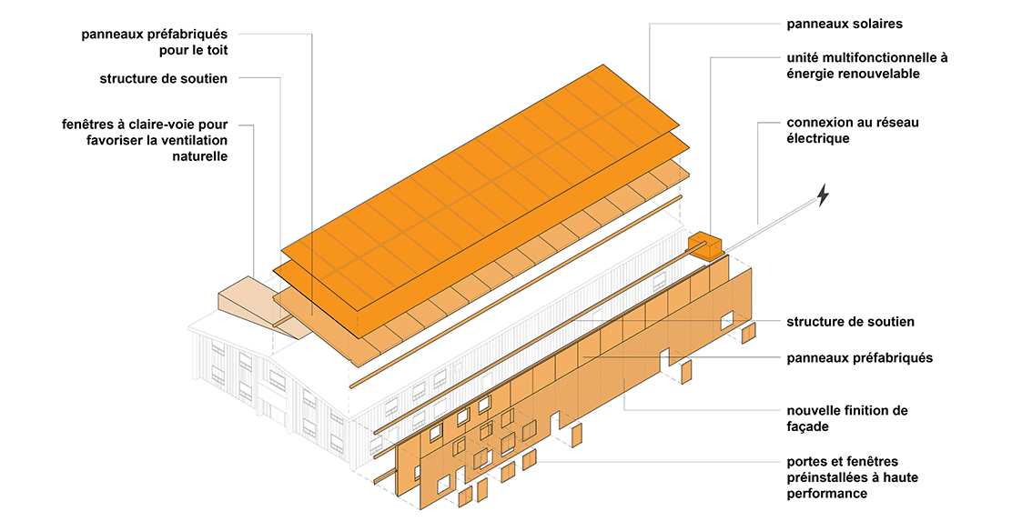 « L’arrondissement de l’Île-Bizard-Sainte–Geneviève de la ville de Montréal lance un avis d’appel d’intérêt afin de sonder l’industrie en vue d’un futur appel d’offres pour la rénovation écoénergétique en profondeur (REP) du Centre socioculturel de l’Île Bizard. L’objectif est de réaliser un premier projet pilote de ce type au Québec en collaboration avec l’initiative Reconstruct, inspiré du modèle Energiesprong. Cette approche augmente la performance de l’enveloppe du bâtiment avec des panneaux isolés préfabriqués et met à jour les systèmes mécaniques, réduisant ainsi la consommation énergétique de 50 à 80 %.