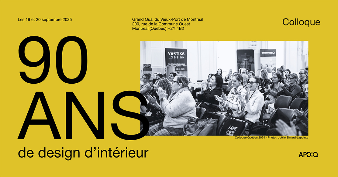 En 2025, l’Association professionnelle des designers d’intérieur du Québec (APDIQ) célèbre un jalon historique : 90 ans de fédération, d’engagement et de rigueur au service de la profession. Pour marquer l’événement, le Colloque 2025 s’annonce comme une édition exceptionnelle, rassemblant la communauté du design d’intérieur les 19 et 20 septembre au Grand Quai du Vieux-Port de Montréal.