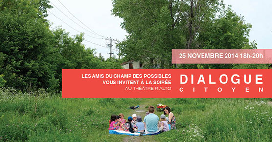 Les Amis du Champ des possibles invitent la communauté à participer à une soirée conviviale de consultation citoyenne qui se tiendra le mardi 25 novembre prochain, de 18h à 21h, au Théâtre Rialto.