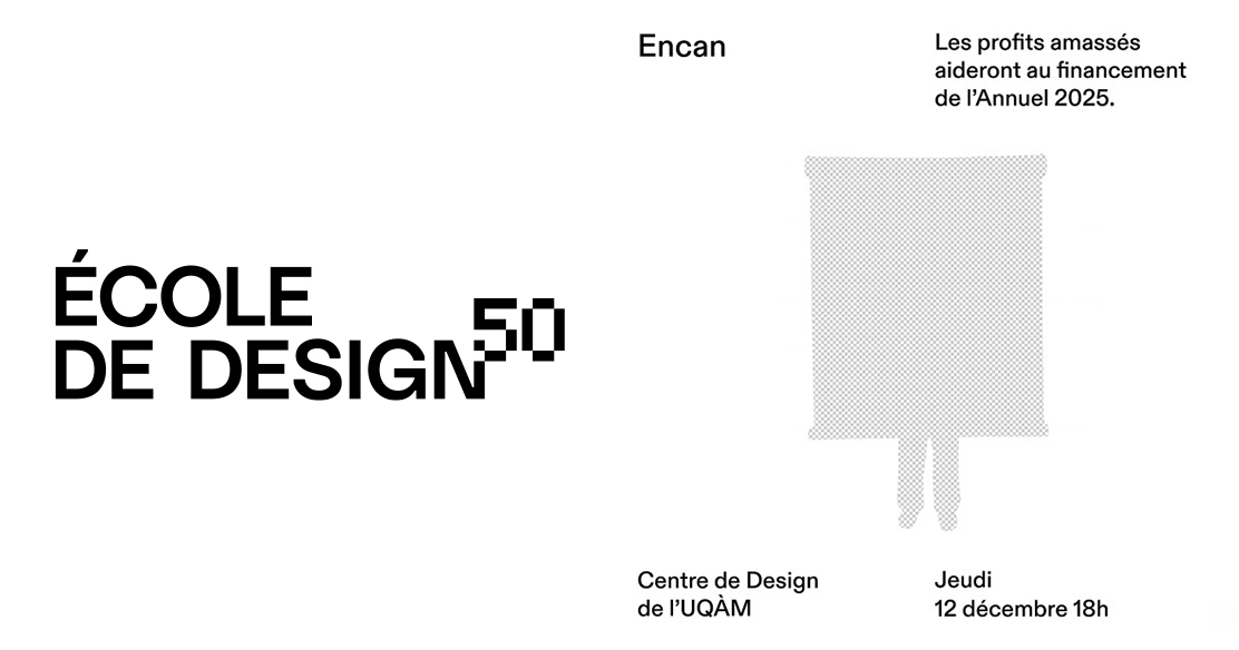 Profitez de cette occasion exceptionnelle pour découvrir et acquérir des œuvres originales créées par des designers talentueux tout en soutenant l’Annuel de design, un événement phare du design au Canada. Tous les profits serviront à financer l’Annuel de design 2025, une exposition organisée par les finissant·es de l’École de design.