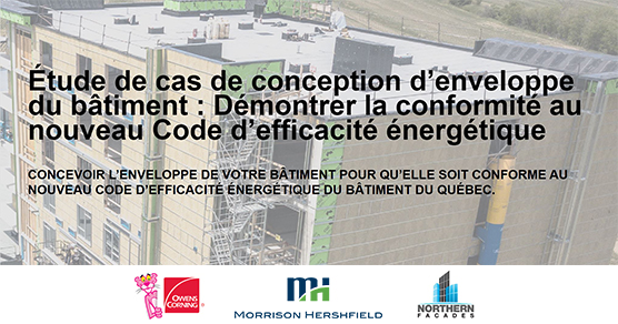 CONCEVOIR L’ENVELOPPE DE VOTRE BÂTIMENT POUR QU’ELLE SOIT CONFORME AU NOUVEAU CODE D’EFFICACITÉ ÉNERGÉTIQUE DU BÂTIMENT DU QUÉBEC.