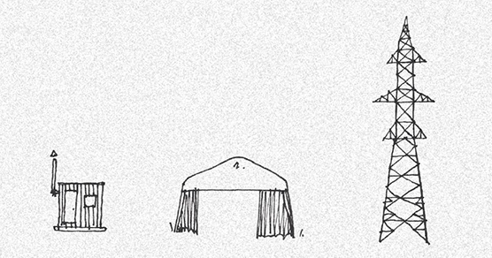 Cabanes de pêche sur glace, abris temporaires et pylônes électriques ont ceci en commun : ils agissent sur le paysage comme des points-clés. Dérivés de notre rapport au climat québécois, saisonnier et extrême, ils sont habituellement considérés comme des nuisances visuelles. Ils ont cependant une esthétique révélatrice du contexte dans lequel ils sont construits: ce sont des points d’attache entre la technique et le territoire. La synergie entre leur fonction spécifique et leur lieu d’implantation leur confère une personnalité représentative de notre rapport à l’environnement, xque l’on soit en pleine forêt, en banlieue ou sur un lac gelé. »