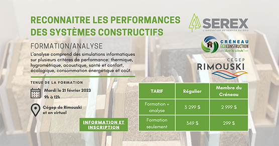 De la part de SEREX et du Créneau Écoconstruction :
