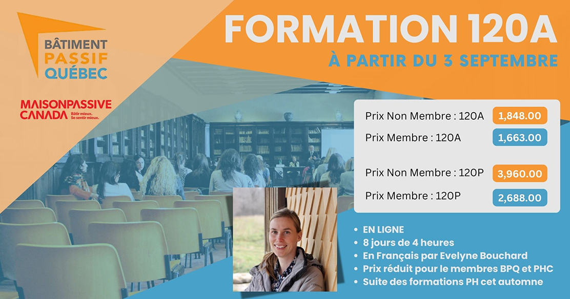 L’instructeur pour ce cours est Evelyne Bouchard.Ce cours, officiellement crédité par le PassivHaus Institute, couvre les aspects techniques, économiques et politiques de la norme Maison Passive. Les participants apprendront à mettre ces principes en pratique grâce à des études de cas (locales et internationales) et à des exercices interactifs.