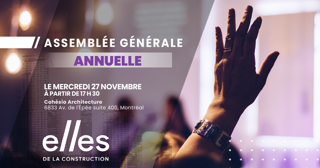 « L’assemblée générale annuelle des Elles de la construction est ouverte à tous, mais seules les membres inscrites peuvent voter. L’assemblée sera l’occasion de vous inviter à moment de réseautage accompagné de bouchées et boissons.