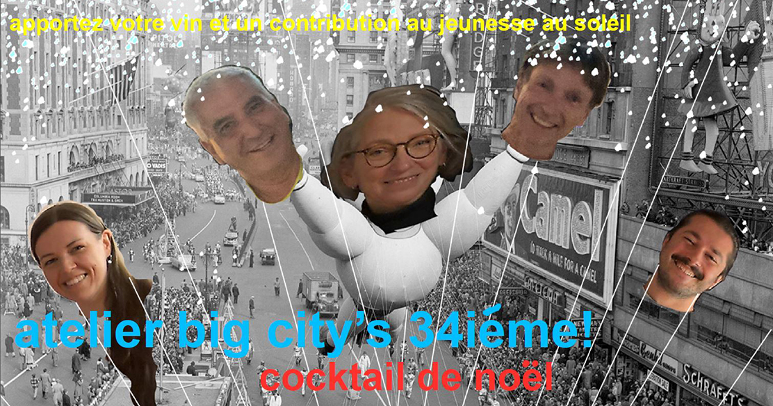 « L’ensemble de la communauté architecturale montréalaise est cordialement invitée au traditionnel cocktail des Fêtes de l’Atelier Big City. La soirée aura lieu le jeudi 21 décembre prochain de 19h à Minuit à leur bureau (55, Mont-Royal Ouest, bureau 601).