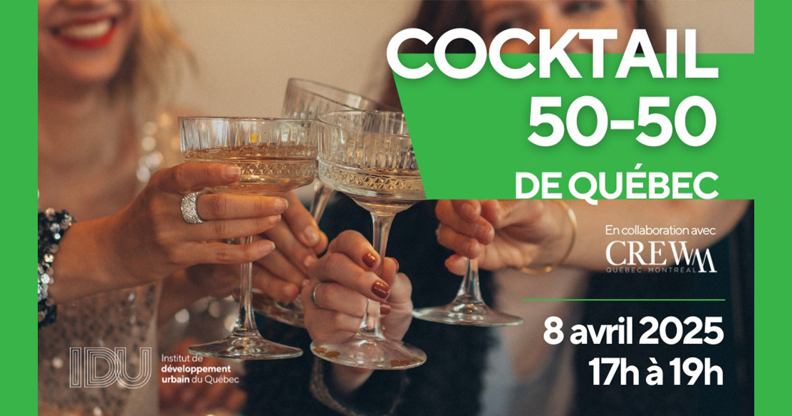 « L’IDU et CREW M sont ravis de vous inviter au Cocktail 50-50 de Québec, qui aura lieu le 8 avril prochain, de 17h à 19h !