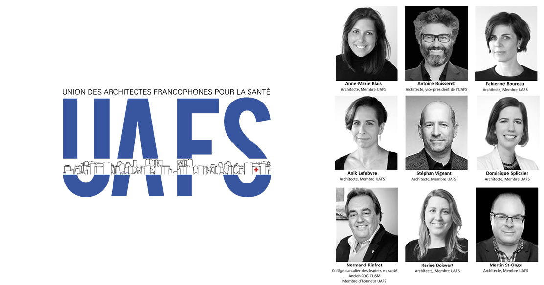 Cette journée d’échange sera animée par les architectes et membres de l’UAFS : Anne-Marie Blais, Karine Boisvert, Fabienne Boureau, Antoine Buisseret, Anik Lefebvre, Martin Fiset, Stéphan Vigeant, Dominique Spickler, Martin St-Onge et Normand Rinfret, membre du Collège canadien des leaders en santé, Ancien PDG CUSM, Membre d’honneur UAFS