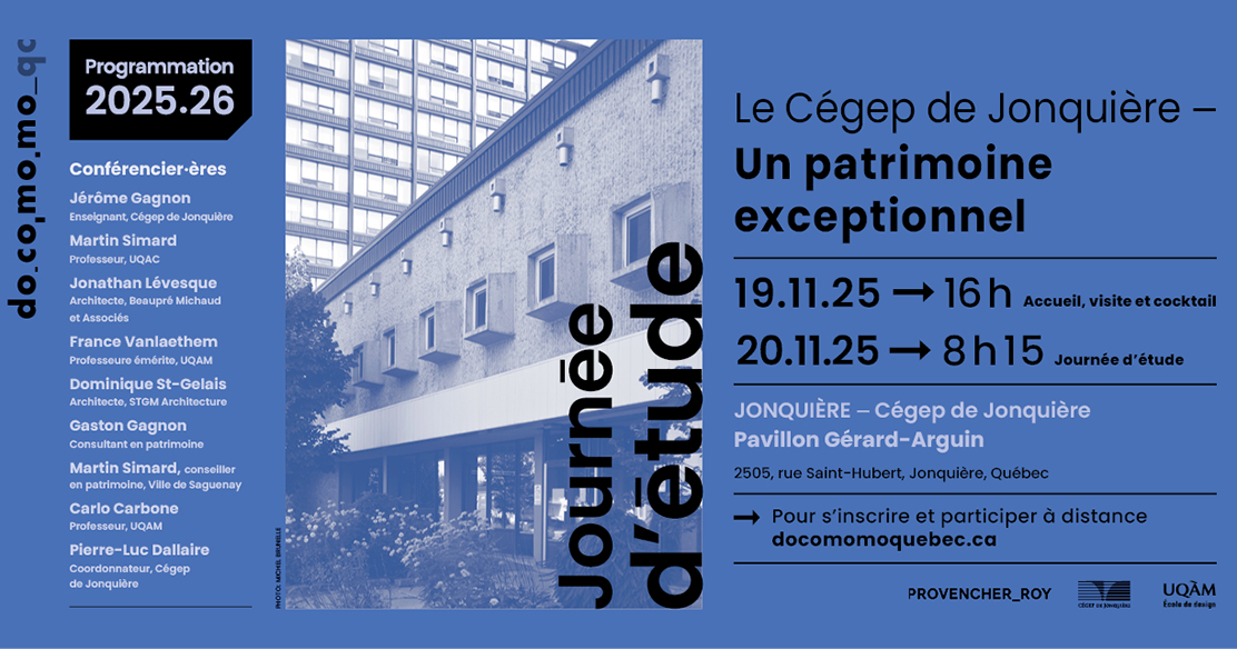 « Événement organisé par le Cégep de Jonquière et Docomomo Québec, les 19 et 20 novembre 2025.