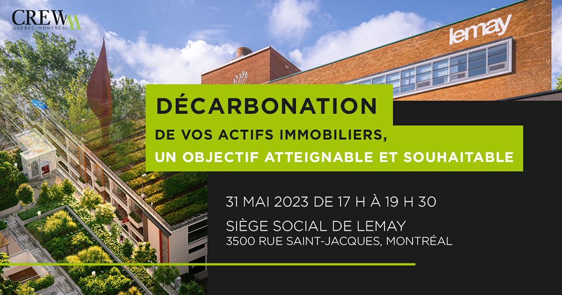 CREW M vous invite à vous joindre à la conversation entourant la décarbonation de l’industrie immobilière. Lors de ce cocktail, les professionnels ESG de KPMG, Lemay et MONTONI discuteront des incitatifs actuels et des avantages des nouvelles constructions à faible émission de carbone :