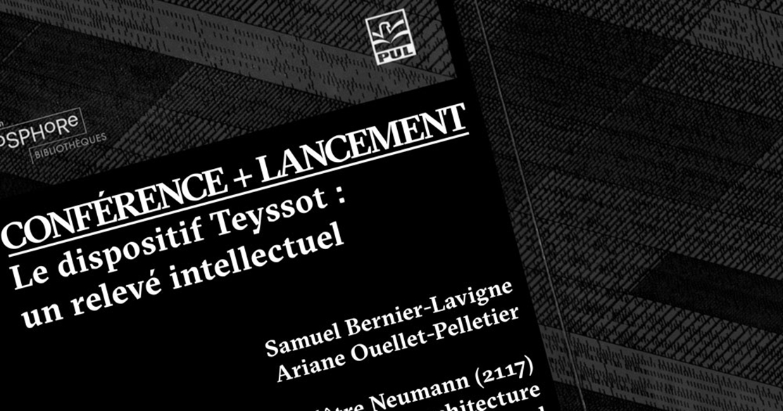 L’École d’architecture de l’Université Laval a le plaisir de vous convier au lancement du livre Le dispositif Teyssot. Un relevé intellectuel de la Collection Phosphore, aux Presses de l’Université Laval.