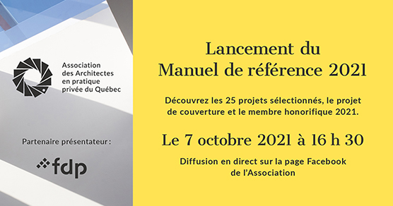 « L’AAPPQ a le plaisir de vous inviter au lancement virtuel du Manuel de référence 2021, qui sera diffusé en direct de notre page Facebook le 7 octobre de 16h30 à 17h15.