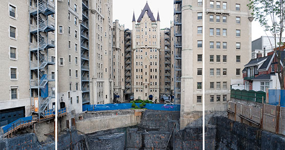 Le chantier de construction est une chose curieuse. De l’intérieur, pour ceux dont il est à la charge, le chantier n’est pas une fin en soi, mais un simple moyen, un espace de travail et un processus technique pour parvenir à l’ouvrage final. On cherche aussi, très souvent, à le rendre invisible et inaccessible, comme un tabou : « Accès interdit. Circulez, il n’y a rien a voir. » Or, de l’extérieur, le chantier ne devient-il pas une oeuvre qui a sa vie propre? Ne suscite-t-il pas l’intérêt des habitants à la contemplation desquels il s’expose malgré lui? Brèche temporaire dans le tissu urbain, le chantier n’est-il pas un événement ayant le pouvoir de renouveler le regard que les citadins portent sur leur quotidien, leur environnement bâti et la fabrique de la ville en général? »