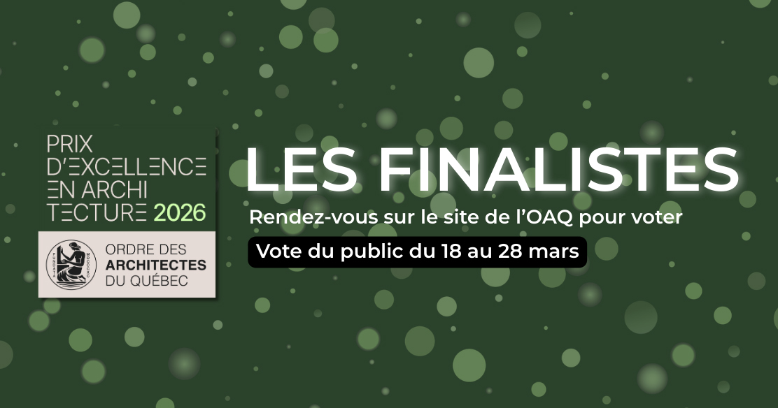 « L’Ordre est heureux de dévoiler les finalistes des Prix d’excellence 2026, à la suite des délibérations du jury qui ont eu lieu les 10 et 11 mars. Ces prix mettent en lumière des projets et des initiatives marquantes contribuant à la qualité du cadre bâti.