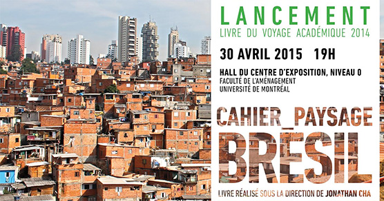 « C’est avec grand plaisir que nous vous invitons au lancement du livre Cahier paysage BRÉSIL réalisé par les étudiants du voyage d’études au Brésil organisé par l’École d’architecture de paysage au printemps dernier. Toutes les informations se trouvent sur le carton d’invitation ci-joint.