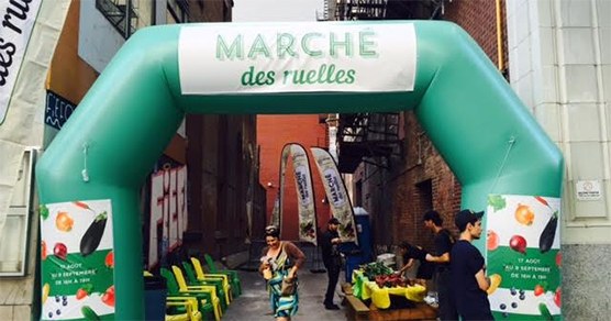 « Montréal, le 18 août 2016 – Après deux années de succès, le Marché des ruelles revient pour une 3eme année consécutive. Fruits et légumes de saison à prix imbattables, maïs bouillis et espace détente vous attendent dans trois ruelles du centre-ville. Le Marché des ruelles est un projet éphémère qui prend place du mercredi 17 août au vendredi 9 septembre. Situés au sud de la rue Sainte-Catherine au coin de Peel, une autre au sud de la rue Sainte-Catherine au coin de Metcalfe et la dernière sur la rue Sainte-Catherine au coin de Aylmer, le marché éphémère prend place les mercredis, jeudis et vendredis de 16:00 à 19:00.