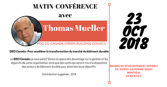 Matin-conférence de Thomas Mueller (GBCI Canada) | « Pour accélérer la transformation du marché du développement durable »