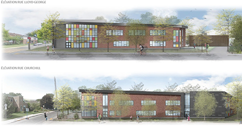 « La Commission scolaire Marguerite Bourgeoys (CSMB) souhaite ériger une école primaire et préscolaire de deux étages et 14 classes sur le site de l’ancienne école Crawford dans le secteur du même nom, au carrefour des rues Lloyd George, Clémenceau et Churchill. Cet établissement, annexe de l’école Notre Dame-de-la-Garde, pourrait accueillir 300 élèves. En plus des classes, le bâtiment à construire comprendrait un gymnase, une salle multifonctionnelle, un service de garde, une bibliothèque et des locaux administratifs. Le bâtiment serait composé de deux volumes en forme de « L », pour une superficie au sol de 1600 m2.