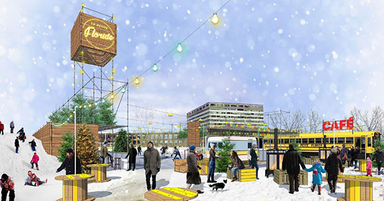 Accessible en tout temps, le site de La Petite Floride sera animé du marché de Noël à la cabane à sucre , avec des évènements culturels hebdomadaires. Un aménagement urbain chaleureux à échelle humaine, un café dans un autobus scolaire, un bar à vin chaud, une programmation mettant de l’avant les talents locaux émergent ainsi que des activités sportives sur neige et sur glace (hockey, curling, ballon-balai, glissades) : La Petite Floride deviendra un lieu de rassemblement de quartier incontournable durant la saison froide, en plus de diversifier l’offre événementielle hivernale de la métropole.