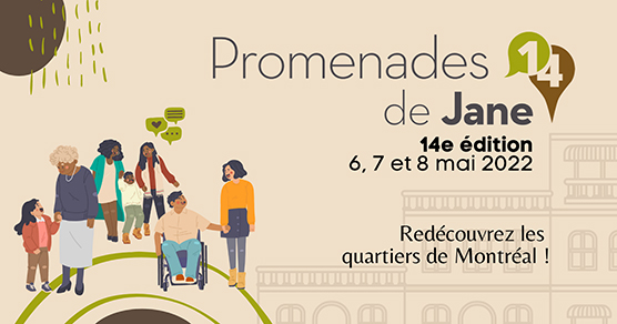 « Préparez-vous à (re)découvrir votre ville ! De retour dans les quartiers de Montréal après deux ans en ligne, la 14e édition des Promenades de Jane aura lieu les 6, 7 et 8 mai prochains. Cet événement est l’occasion parfaite d’échanger et de partager avec des citoyens de tous horizons sur des enjeux, thèmes ou réalités montréalaises.