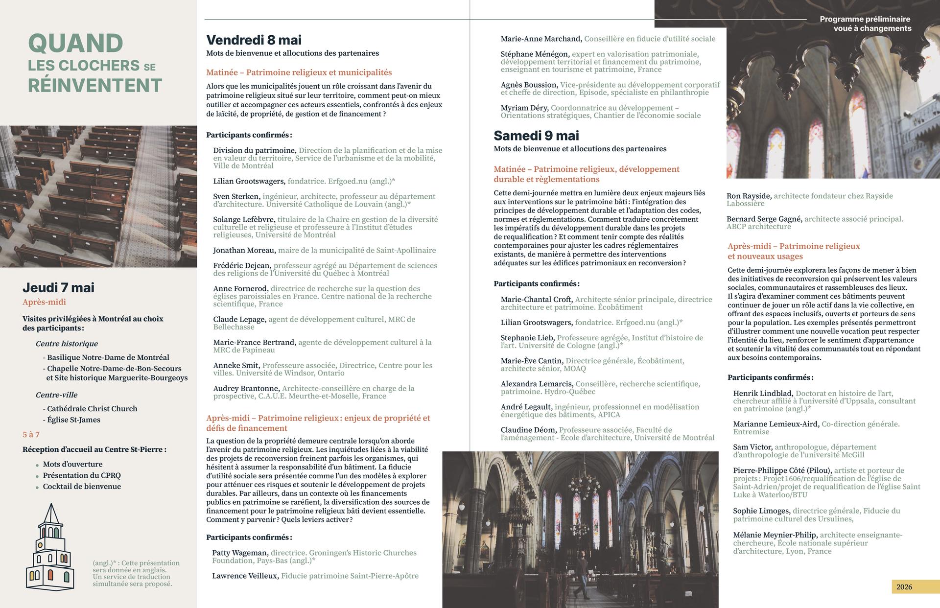 Grâce au soutien de nombreux partenaires, parmi lesquels les firmes Entremise et Ecobâtiment, ce colloque rassemblera des experts d’ici et d’ailleurs pour explorer des solutions innovantes afin de mieux gérer, valoriser et adapter le patrimoine religieux dans un contexte de profondes transformations. Conférences et panels permettront d’outiller les acteurs du milieu et d’imaginer ensemble un avenir durable et porteur de sens.