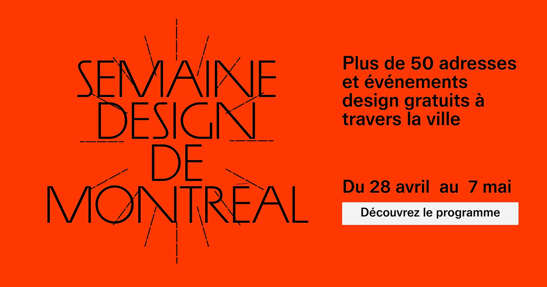 Consultez les horaires sujets à changement. Le programme complet est disponible sur le site de la Semaine Design de Montréal : www.semainedesigndemontreal.com