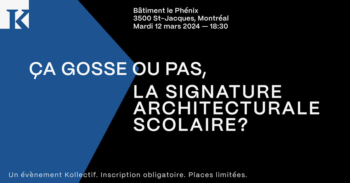KOLLECTIF vous invite à prendre part à la discussion le 12 mars 2024, dès 18h30, dans l’agora de la firme LEMAY (bâtiment le PHÉNIX), situé au 3500 rue Saint-Jacques, à Montréal.