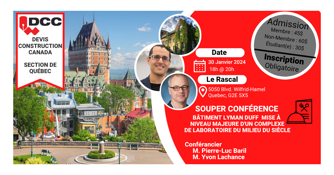 Les opinions et commentaires exprimés par les conférenciers ne reflètent pas nécessairement les opinions officielles de Devis de construction Canada. Aussi, l’apparition de publicités ainsi que les informations sur les produits ou services ne constituent pas une approbation des produits ou services présentés.