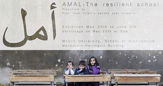 Prof. Ipek Türeli and her students in the studio course Design and Construction 2 invite you to the opening of the exhibition “Amal: The Resilient School.” Amal, hope in Arabic, is an elementary school for traumatized Syrian refugee children in Turkey. This exhibition showcases the students’ propositions on how educational buildings and school architecture can respond to the ongoing humanitarian crisis.