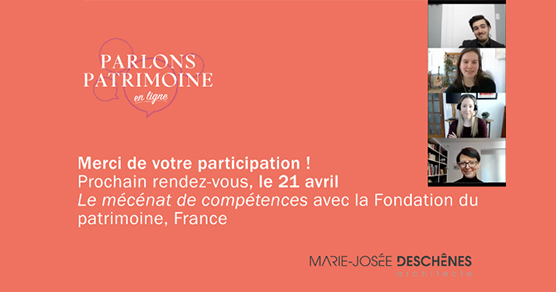 25 personnes sont déjà inscrites à ce rendez-vous au format convivial et professionnel ! Pour cette rencontre, la Fondation du patrimoine viendra alimenter notre connaissance et notre réflexion sur cette pratique encore peu connue au Québec.