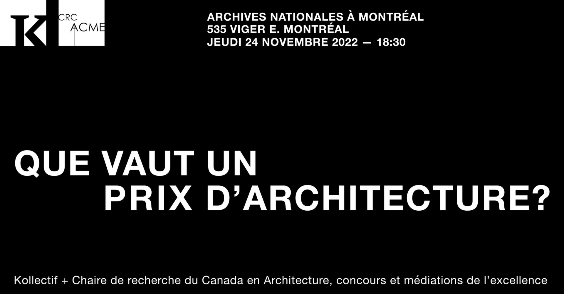 L’événement est organisé par Kollectif, en partenariat avec Jean-Pierre Chupin, titulaire de la Chaire de recherche du Canada en architecture, concours et médiations de l’excellence (Université de Montréal) et co-directeur du livre collectif The Rise of Awards in Architecture (Vernon Press, 2022) avec Carmela Cucuzzella et Georges Adamczyk.