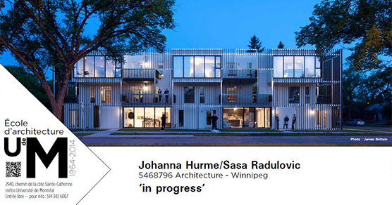 Johanna Hurme et Sasa Radulovic sont invités par l’École d’architecture pour diriger le deuxième volet de l’atelier triptyque du trimestre d’automne 2014.