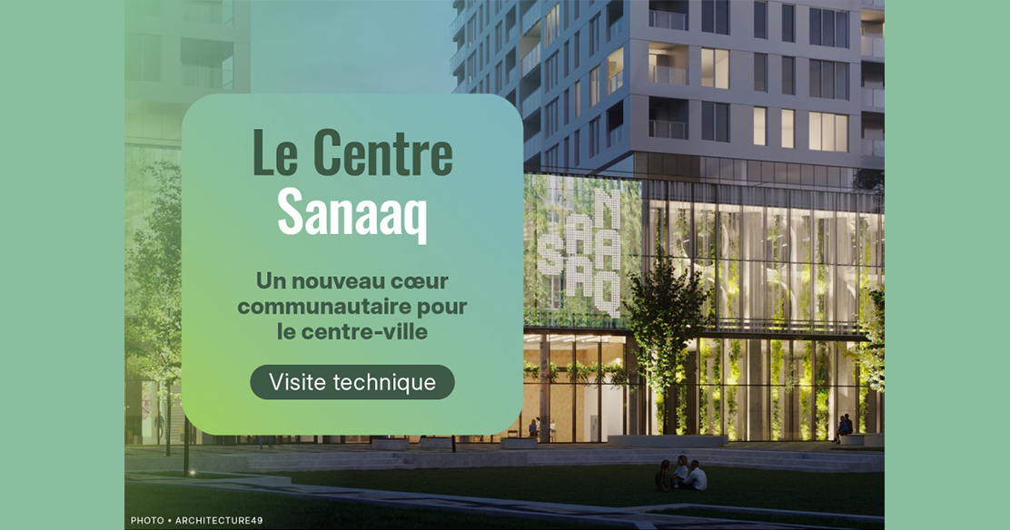 Fruit d’un concours d’architecture pluridisciplinaire international et réalisé par les firmes Architecture49 inc. / Pelletier de Fontenay / Atelier Zébulon Perron / CIMA+, le tout nouveau Centre culturel et communautaire Sanaaq (créer, œuvrer, sculpter, travailler en inuktitut) est le nouveau pôle pour les citoyens du district Peter-McGill de l’arrondissement de Ville-Marie de Montréal.