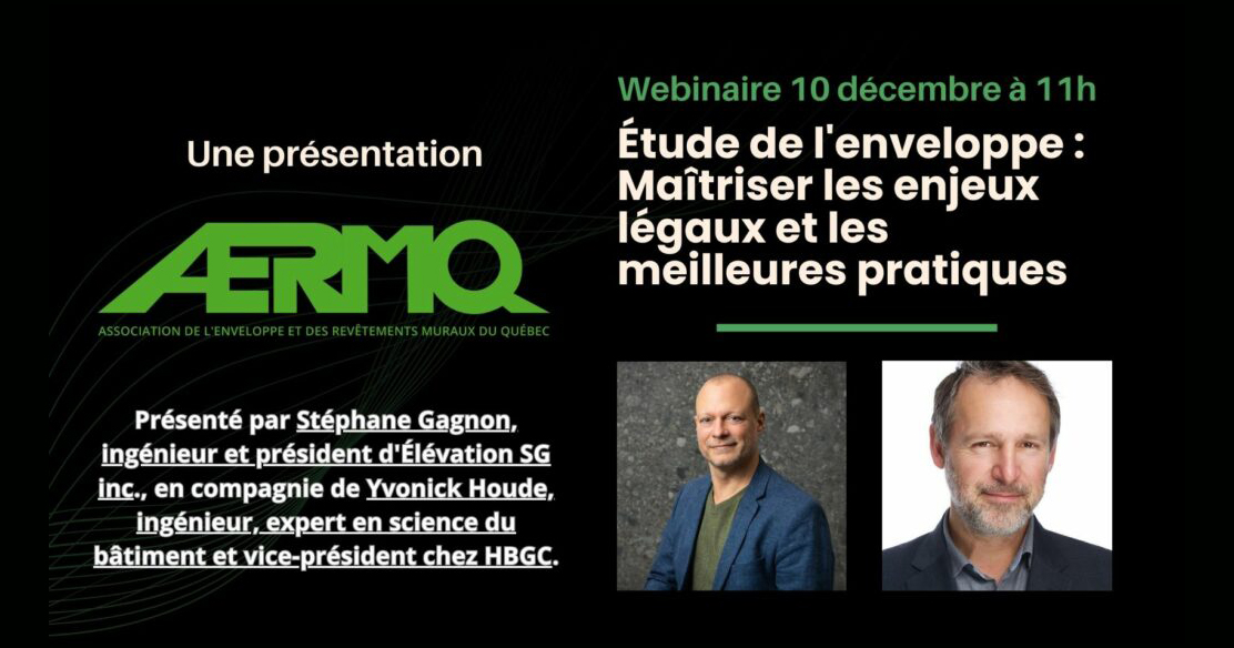 Présenté par Stéphane Gagnon, ingénieur et président d’Élévation SG inc., en compagnie de Yvonick Houde, ingénieur, expert en science du bâtiment et vice-président chez HBGC. »
